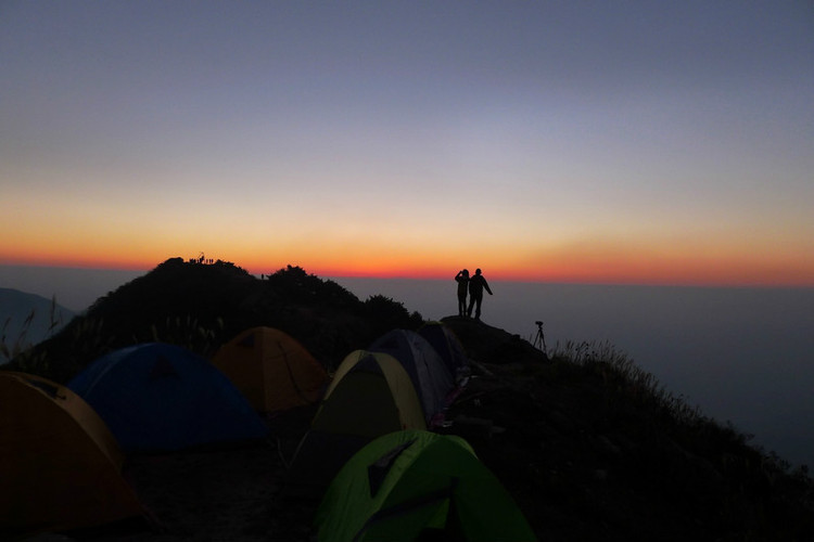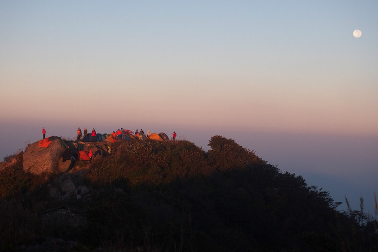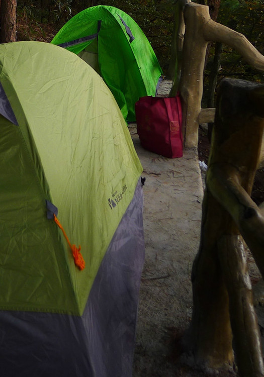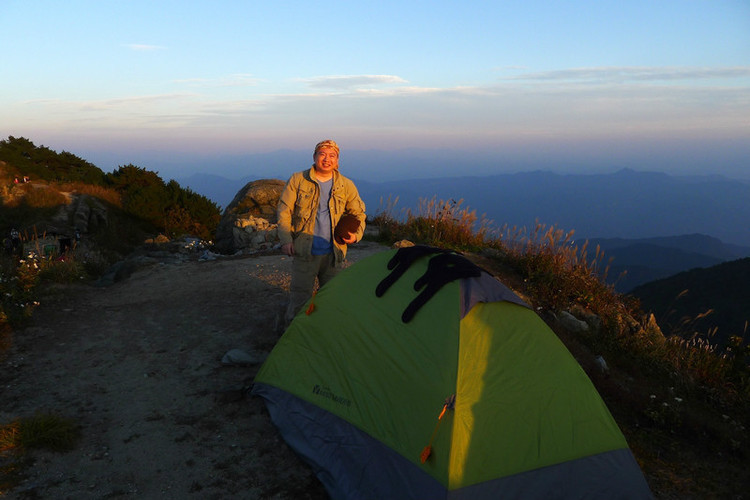 终于赶在天黑前回到了南天门,我们选了一段施工了一半暂时封闭的道路上扎营,这样不会受过往的人影响,后来证明是正确的,太阳刚落下,有一对准备上主峰的露营队伍因为天黑上不去只好在正南天门扎营晚上也是吵到很晚才睡。