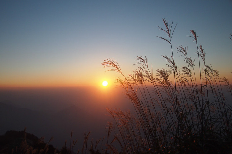 10月1号晚上宿营南天门,虽说是在半山但到早上4点多还是被冻醒了,坚持到5点过一点实在抵不住寒气,干脆起来煮了一小壶热咖啡,吃了一小块压缩饼干,感觉身上才开始热起来。虽说暖和了,但也睡不着了,干脆早点去看日出。走到南天门的时候发现昨晚在南天门露营的一群人也因为寒冷早早的起来生了一小簇火取暖,和他们寒暄两句就一个人径直往哲人峰过去,清晨山上的风非常冷,吹在脸上好似刀子似的,不过看到了美丽的景色也算值得,因为前日微单的电用完了,只好用lx5记录了。