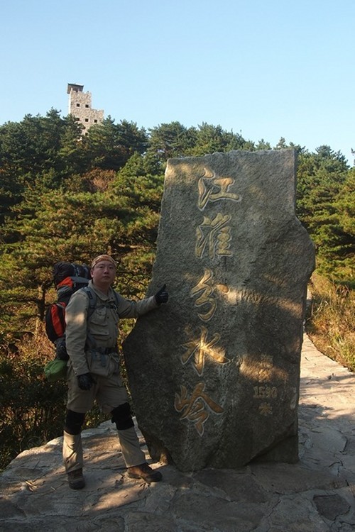 从烽火台下来后又看到了江淮分水岭,海拔1590米。
