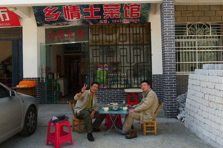 我们从武昌走阳逻大桥上武英高速,在罗田大别山出口下,一路畅通,可能是因为早的缘故,路上基本没什么车,最后比预计的提前了半个小时到达第一站:九资河镇圣人堂村。找了一家去年来过的饭馆,点了两个小菜,饱饱的吃了一顿。边吃边欣赏店外的风景,胃口都好很多