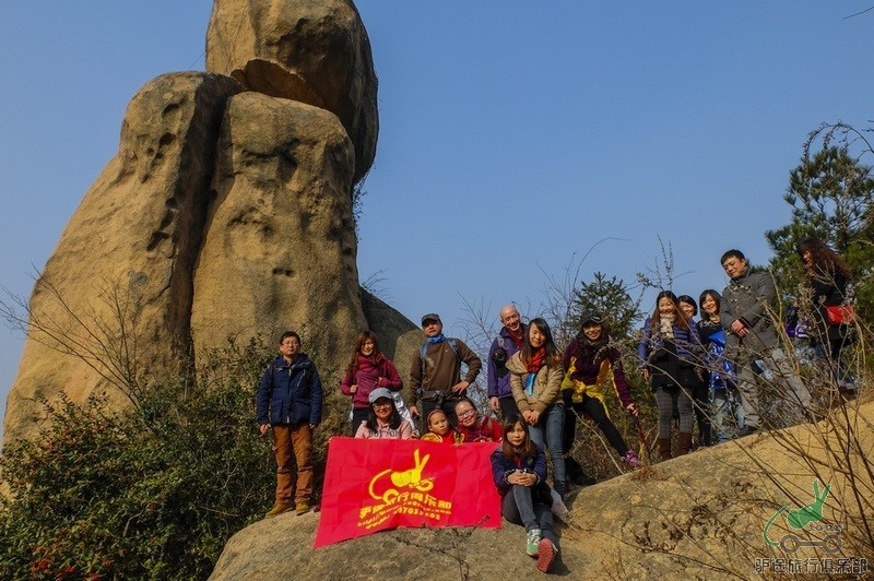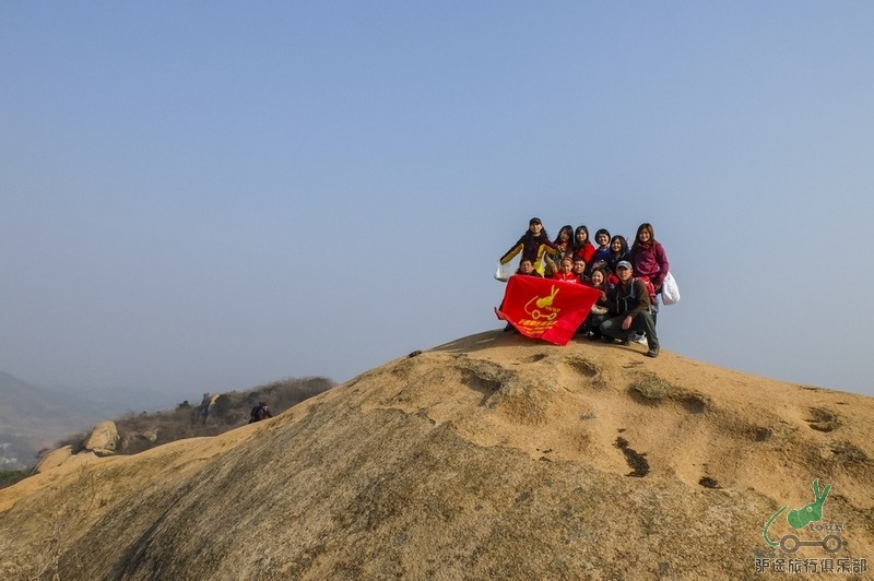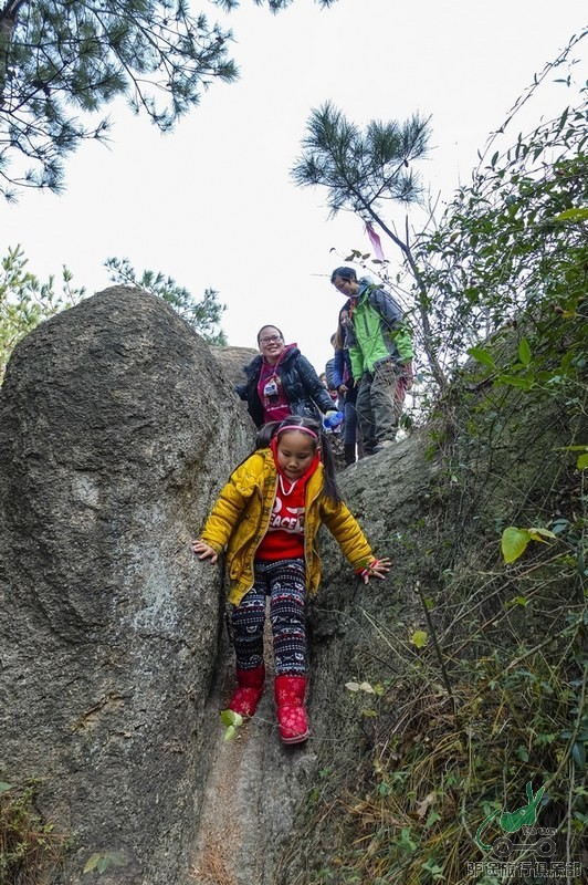 将近11点钟我们一行驴友开始向山上行走,有一条小路可以通往山顶,然后沿着山脊的山路前进,还有几处由于巨石挡路,要从旁边的树林中绕行,尤其记得要从大巨石的石缝里钻过,不好意思,本人勉强侧着身穿过去,四处也没有看到明显的山上路标,幸好领队西罗提前探好路,为我们节省体力和时间。随着山路蜿蜒而上,闪存大哥的随身播放器的一曲曲歌声就在山间,树林里响起,让我们的步子迈得更大,心情更加飞扬。