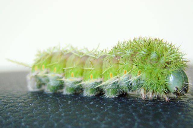 在有被啃咬痕迹的植物叶子上,常常会有五彩斑斓的毛毛虫。以松毛虫、桑毛虫、刺毛虫等较为多见。这些毛毛虫多有毒,千千不要直接用手去捏,以防被它的毒刺刺伤。如果不幸被毛虫蜇了,千万不能抓,越抓红肿范围越大、皮肤越痛痒难忍。最好随身带些胶布,贴在创面上然后揭下,粘掉皮肤上的毒毛,以减少伤害。